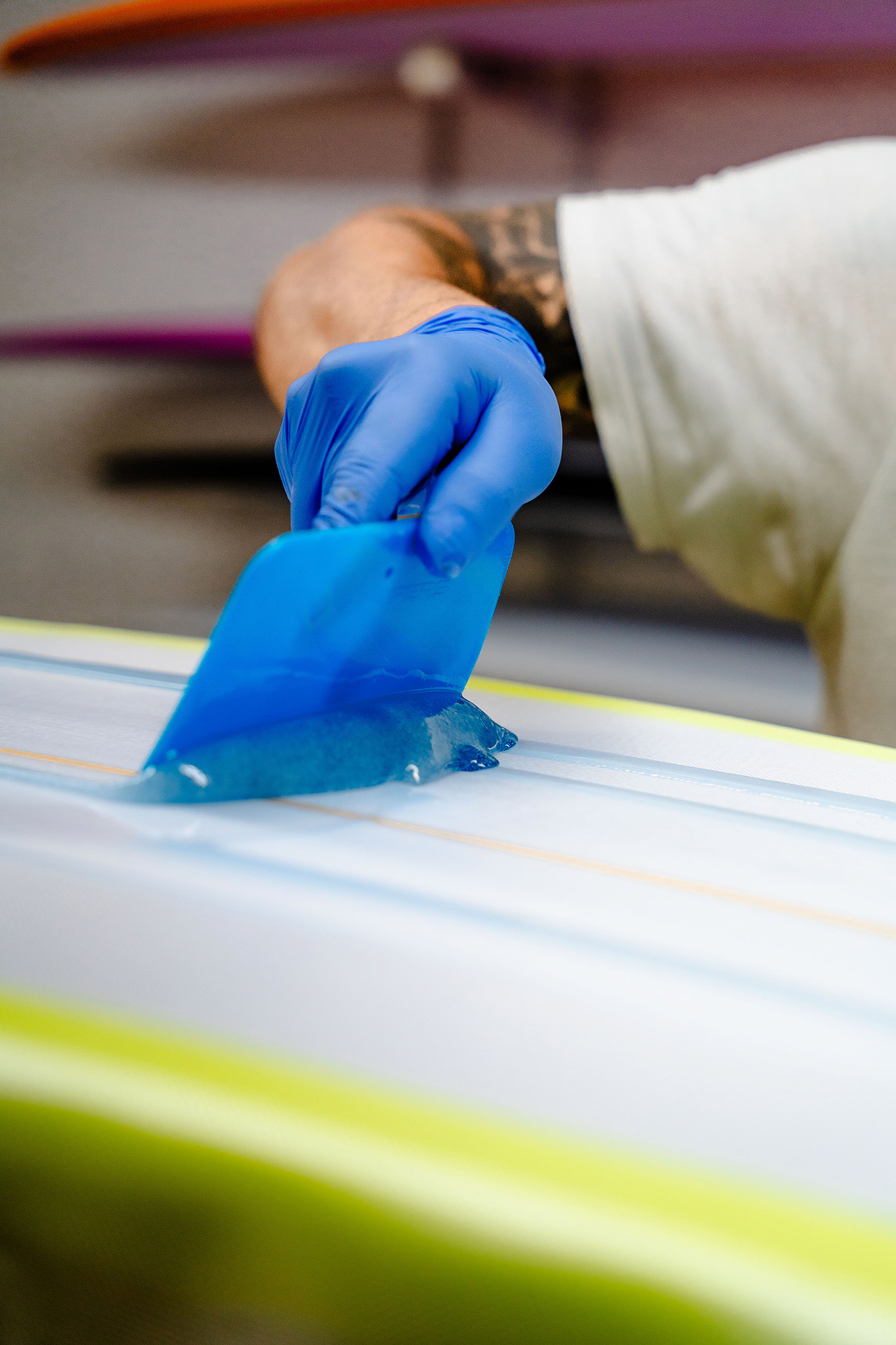 Brand identity photoshoot, behind the shaping of handcrafted, custom boards.